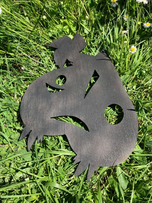 Design, gravure, découpe laser et peinture aérographe par soins. Ils sont protégés par un vernis.