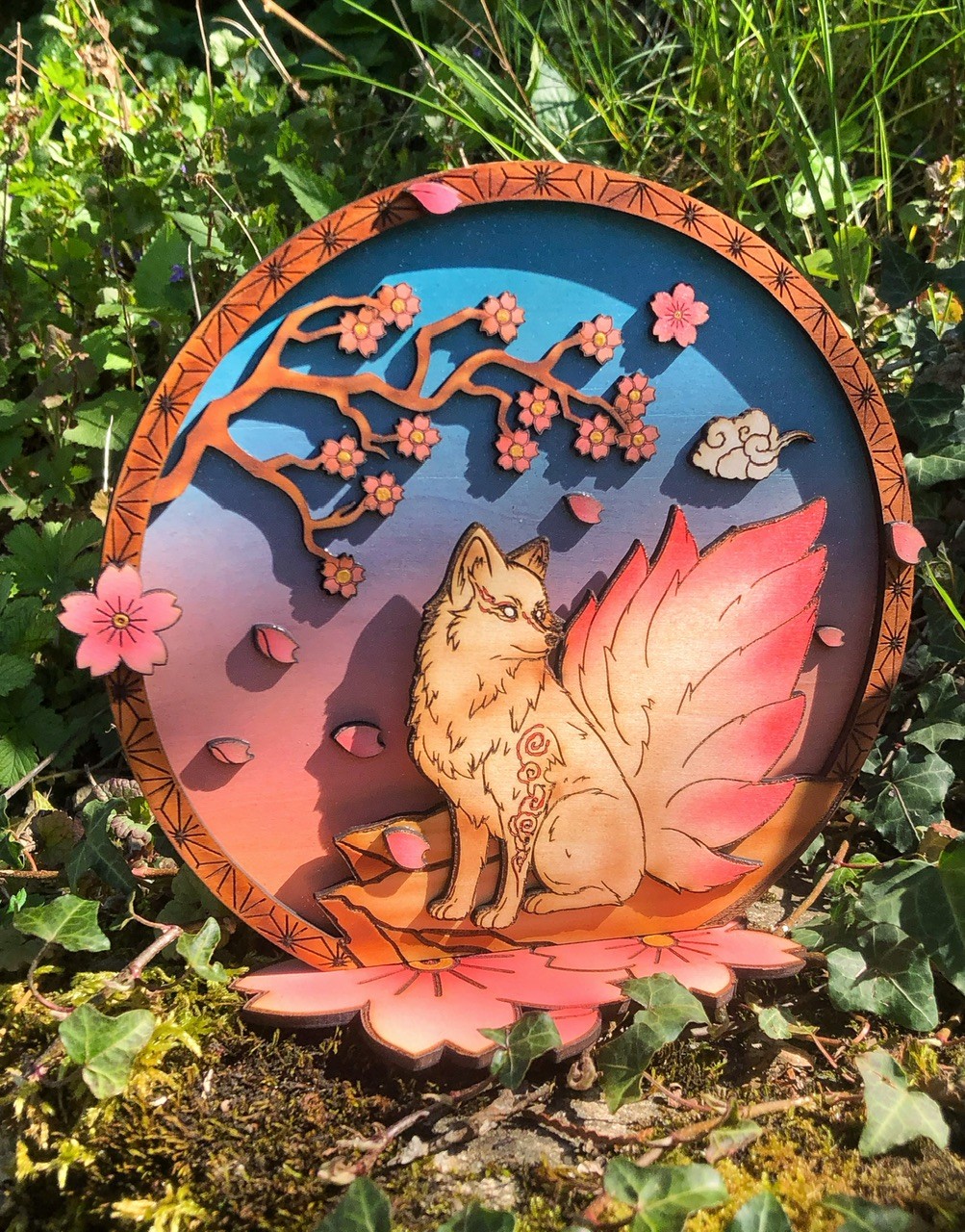 Création inspirée du folklore japonais, idéal en décoration de bibliothèque, gaming room, ... ✨
